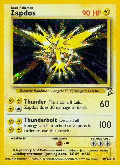 Evne2 [CLLL] Thunder (60) Flip a coin. If tails, Zapdos does 30 damage to self.