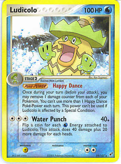 [CCC] Water Punch (40+) Flip a coin for each W Energy attached to Ludicolo. This attack does 40 damage plus 20 more damage for each heads.