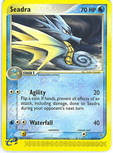 Evne2[CC] Agility (20) Flip a coin. If heads, prevent all effects of an attack, including damage, done to Seadra during your opponent's next turn.