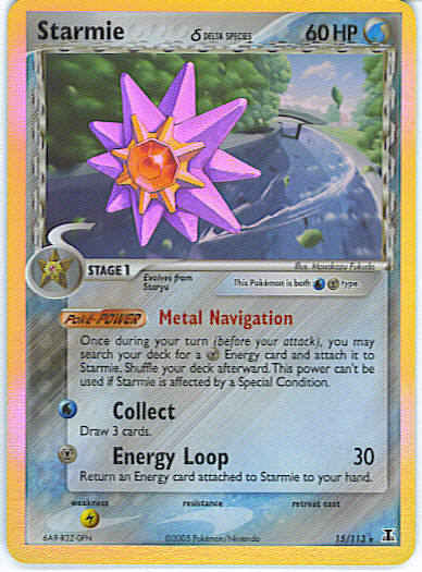 | Type | Metal Water | | Pokemon serie | Delta Species | | Stadie | Stage 1 | | HP | 60 | | Sjældenhed | Rare | | Svaghed | L | | Kortnummer | 15 | | Evne |