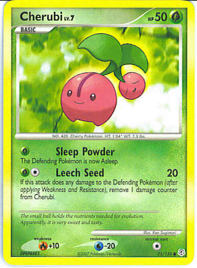 [CG] Leech Seed (20) If this attack does any damage to the Defending Pokemon (after applying Weakness and Resistance), remove 1 damage counter from Cherubi.