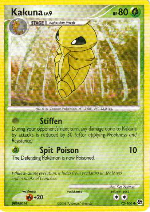 Evne [0] Stiffen - During your opponent's next turn, any damage done to Kakuna by attacks is reduced by 30 (after applying Weakness and Resistance).