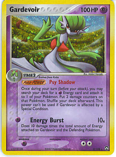 Evne [P] Energy Burst (10x) Does 10 damage times the total amount of Energy attached to Gardevoir and the Defending Pokemon.