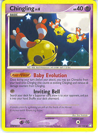 | Type | Psychic | | Pokemon serie | Mysterious Treasures | | Stadie | Basic | | HP | 40 | | Sjældenhed | Uncommon | | Tilbagetrækning | 1 | | Svaghed | P+10 | | Kortnummer | 42 | | Evne |