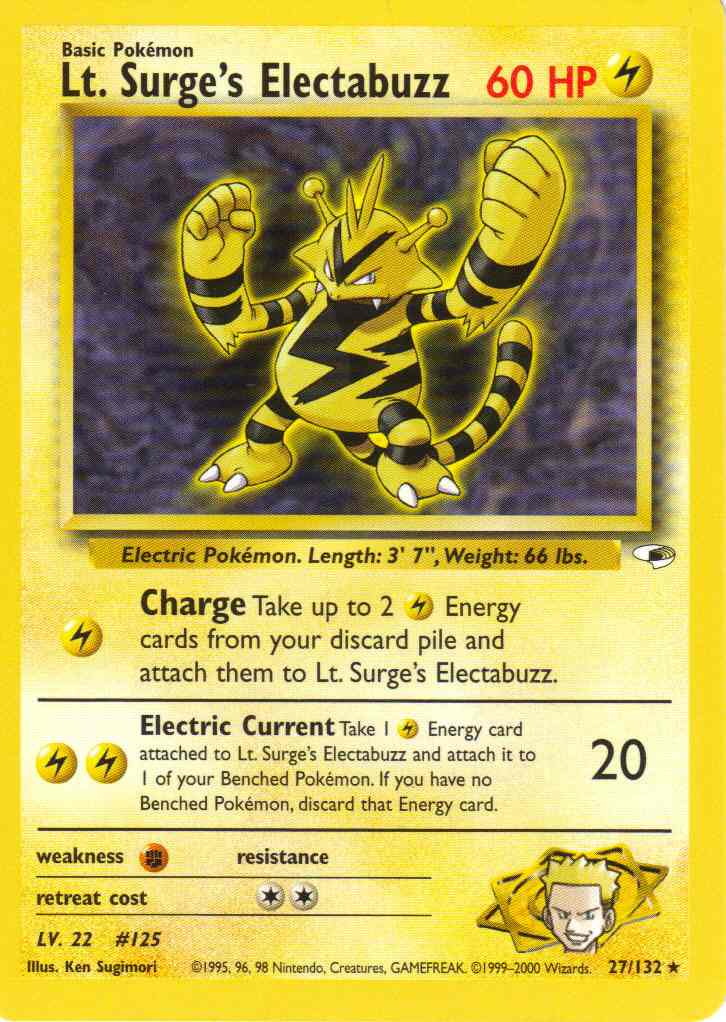 Evne2 [L] Charge - Take up to 2 L Energy cards from your discard pile and attach them to Lt. Surge's Electabuzz