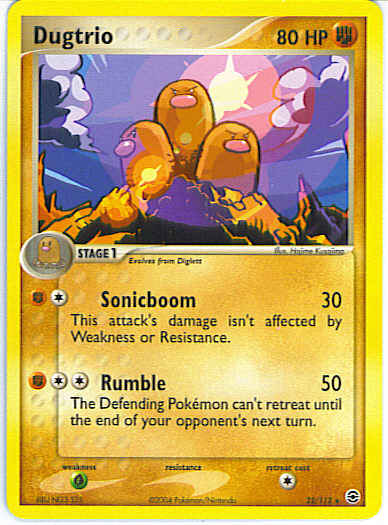 | Type | Fighting | | Pokemon serie | Fire Red Leaf Green | | Stadie | Stage 1 | | HP | 80 | | Sjældenhed | Rare | | Tilbagetrækning | 1 | | Svaghed | G | | Kortnummer | 22 | | Evne | [CF] Sonicboom (30) This attack's damage isn't affect by Weakness or Resistance. [CCF] Rumble (50) The Defending Pokemon can't retreat until the end of your opponent's next turn. | | Evne2 | [CF] Sonicboom (30) This attack's damage isn't affect by Weakness or Resistance. [CCF] Rumble (50) The Defending Pokemon can't retreat until the end of your opponent's next turn. | | Kunstner | Hajime Kusajima |
