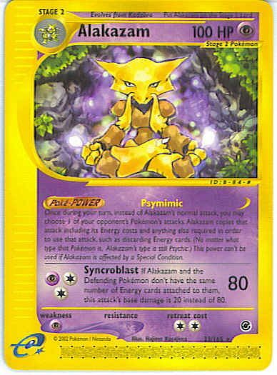 Evne [CCP] Syncroblast (80) If Alakazam and the Defending Pokemon don't have the same number of Energy cards on them, this attack's base damage is 20 instead of 80.