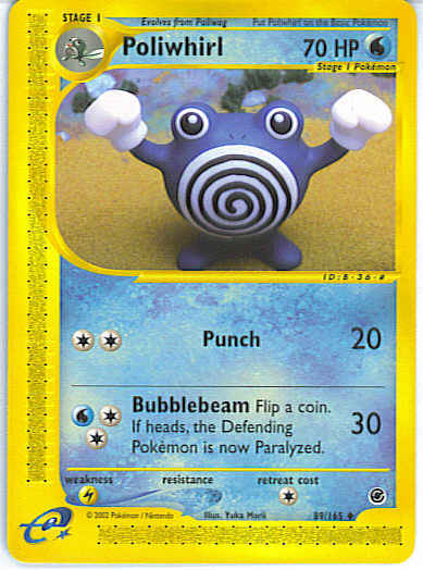 | Type | Water | | Pokemon serie | Expedition | | Stadie | Stage 1 | | HP | 70 | | Sjældenhed | Uncommon | | Tilbagetrækning | 1 | | Svaghed | L | | Kortnummer | 89 | | Evne |