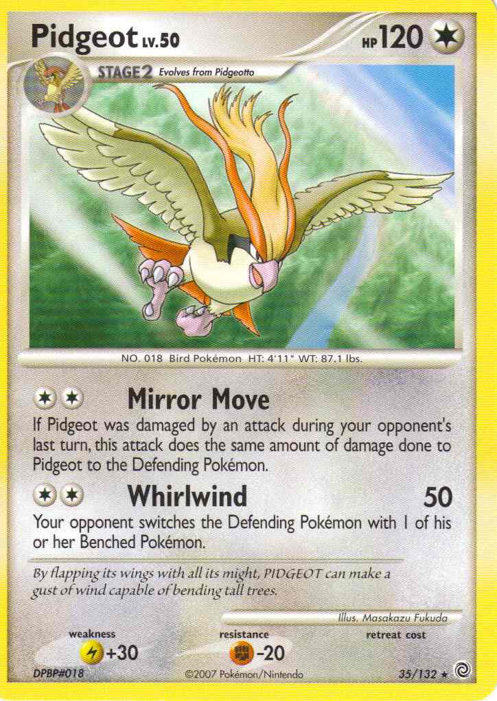 [CC] Mirror Move - If Pidgeot was damaged by an attack during your opponent's last turn, this attack does the same amount of damage done to Pidgeot to the Defending Pokemon.