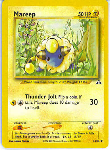 Evne [CL] Thunder Jolt (30) Flip a coin. If tails, Mareep does 10 damage to itself.